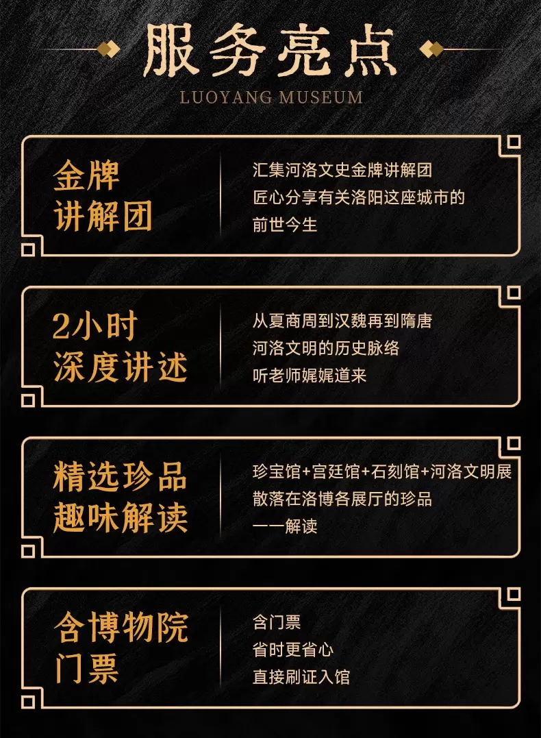 一:此产品包含洛阳博物馆大门票免费预约+可选自由行手机语音讲解和大咖人工讲解2小时,以及独立小包团,人工讲解套餐含无线耳麦