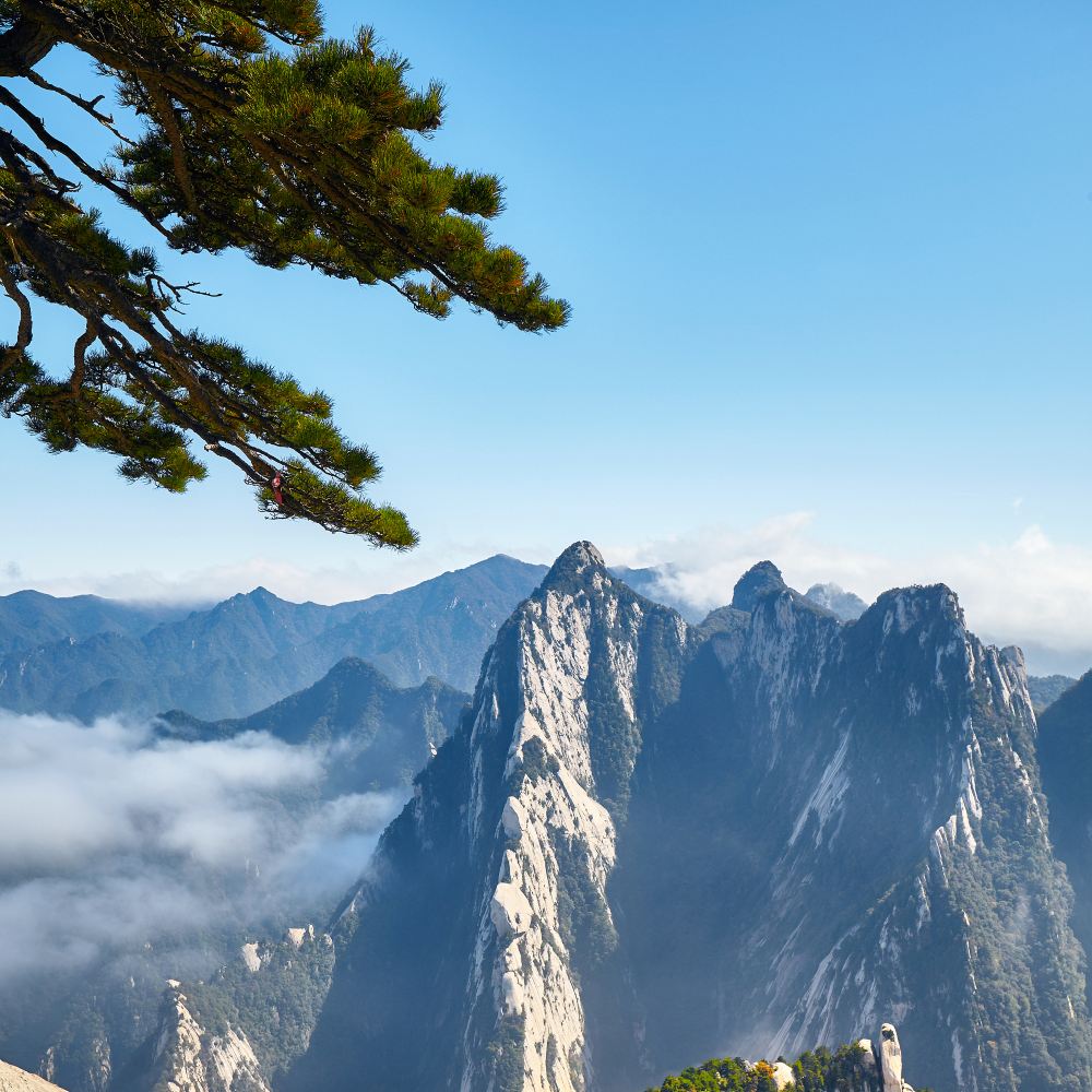 ▲ 华山是中国五岳之一的西岳由一块完整的巨型花岗岩体构成,经长期地质作用,形成了“峭如刀削”的独特地貌。华山共有东、西、南、北、中五座主峰,主峰海拔均在2000米以上,其中南峰“落雁峰”海拔2154.9米。