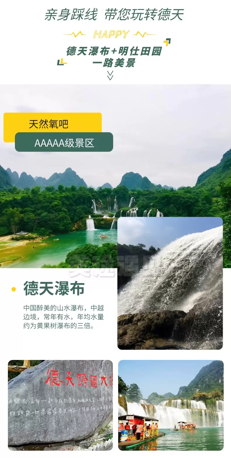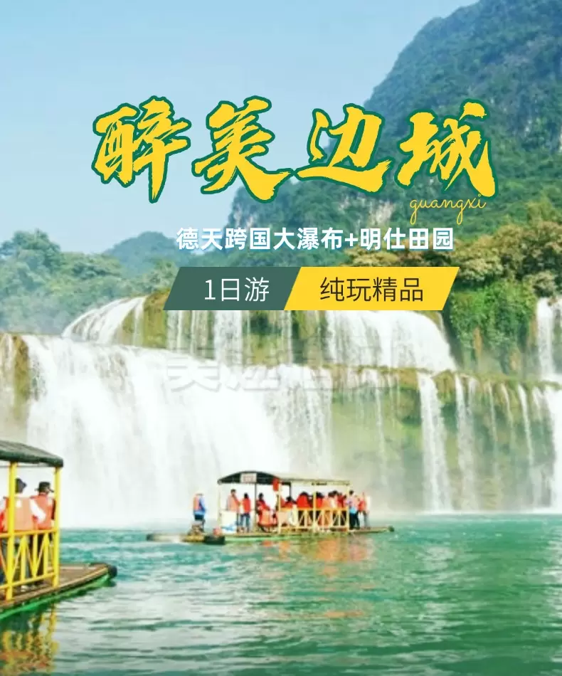 德天跨国瀑布景区+明仕河竹排游一日游【先游德天后明仕/含德天瀑布门票+明仕田园竹筏,纯玩无购物】