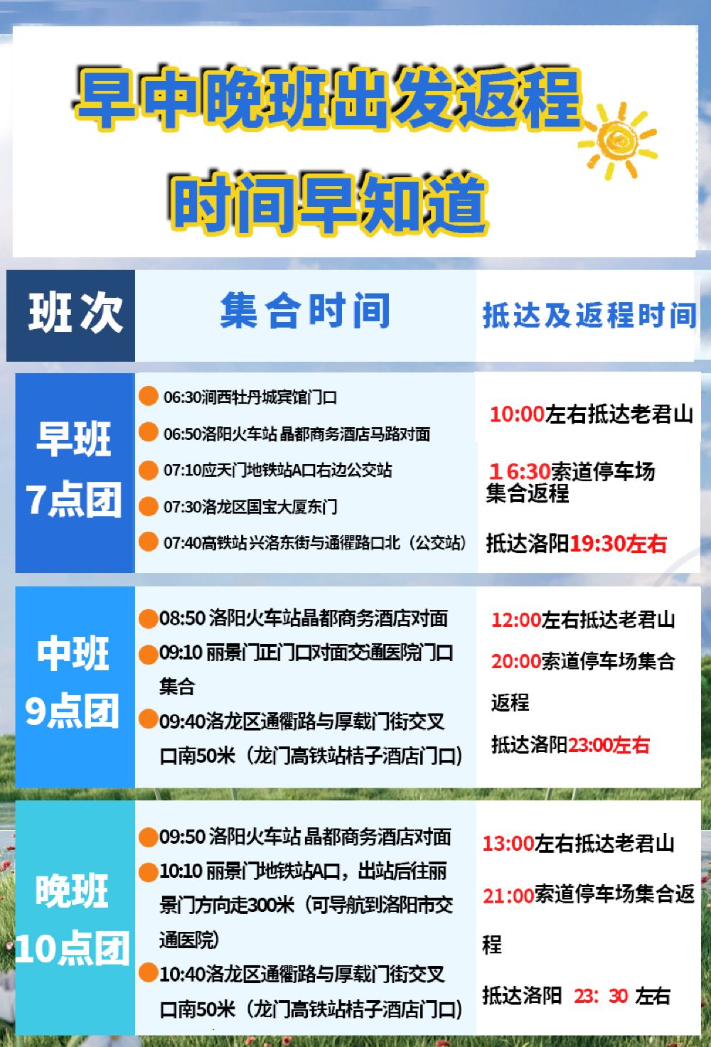 4、因景区人多,统一从洛阳出发,景区汇合无法接待。请您见谅。