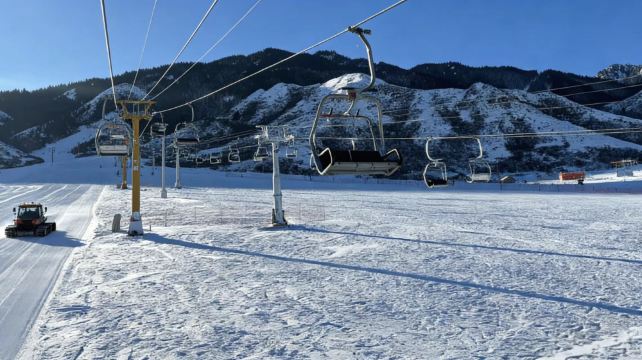 ▲ 碾过雪道,在白茫里压出平整轨迹,缆车悬在林莽与雪山之间,影子斜斜钉在雪上。风裹着松味掠过,是雪场醒过来前,安静又蓬松的清晨