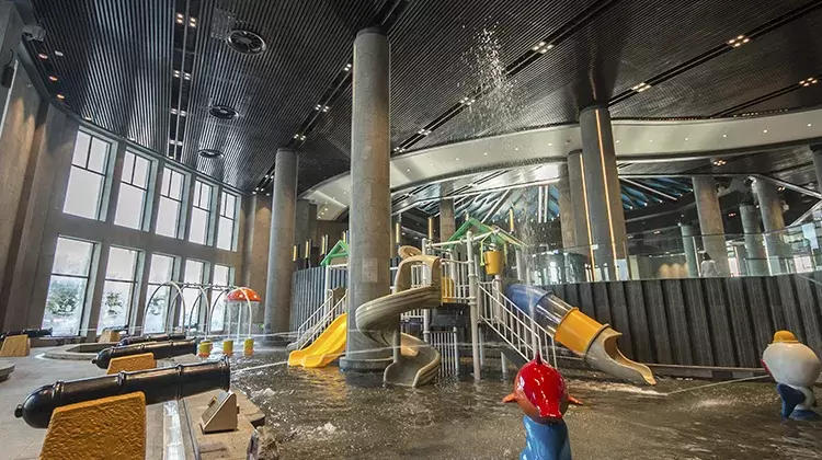 内部开阔辽占地7万平,温泉养生9000平米有室内外温泉(室外温泉冬季不开放)欧式spa韩式汗蒸、水疗馆、狮子星宝贝乐园、30000平米婚礼主题冰雪乐园,1300平宴会厅以及各种等级的套房