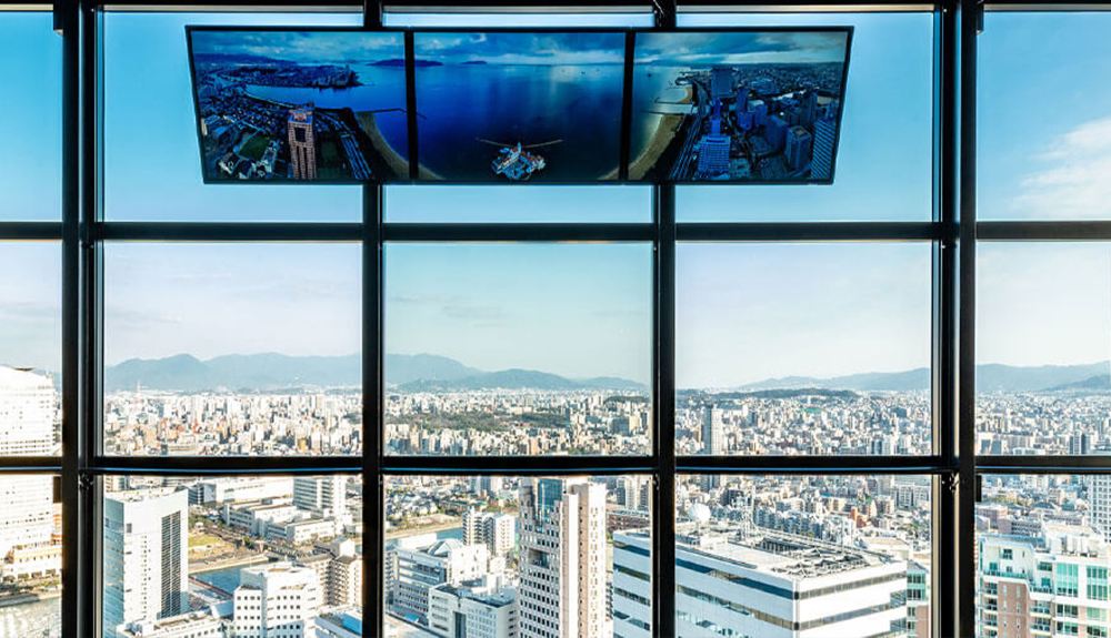 ▲ 【福冈塔】塔身为镶嵌有8,000片半反射玻璃的现代化建筑,并以拥有熠熠生辉镜之帆的「镜帆」爱称而受到大家的喜爱。透过高达123米的展望室的360℃大型全景落地窗,可将福冈街景和博多湾美景尽收眼底。