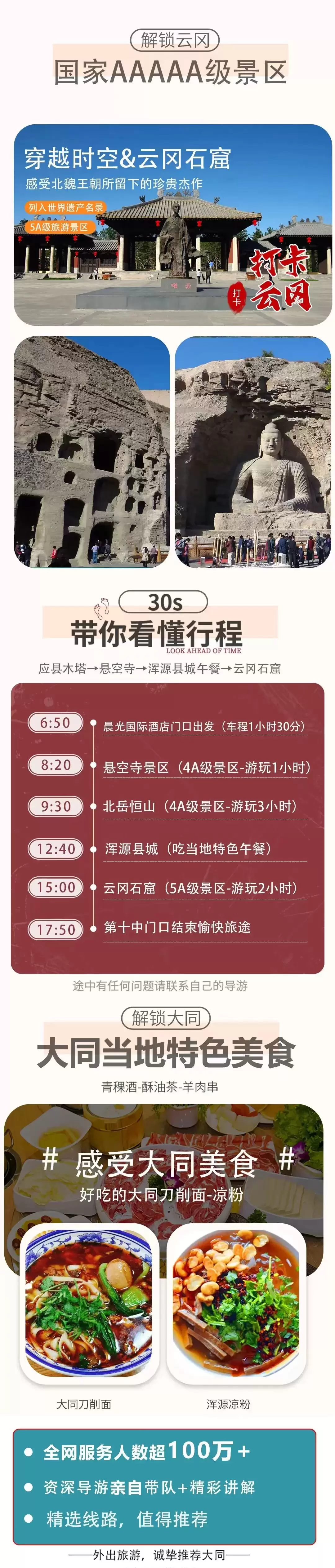 大同悬空寺+应县木塔景区+云冈石窟一日游【纯玩一日 不进店无购物 30人团】