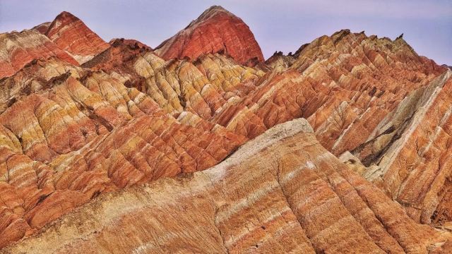 ▲ 流云漫过丹霞群峰,赤红的山体在云影下忽明忽暗,丹岩的色泽从嫣红过渡到赭石,层次万般。奇崛的峰林拔地而起,有的如雄兽盘踞,有的似利剑擎天,岩层的褶皱刻着岁月的纹路。脚下浅溪绕岩而行,溪水映着红岩,水色也染了一抹丹红,天地间尽是独有的雄浑与瑰丽。