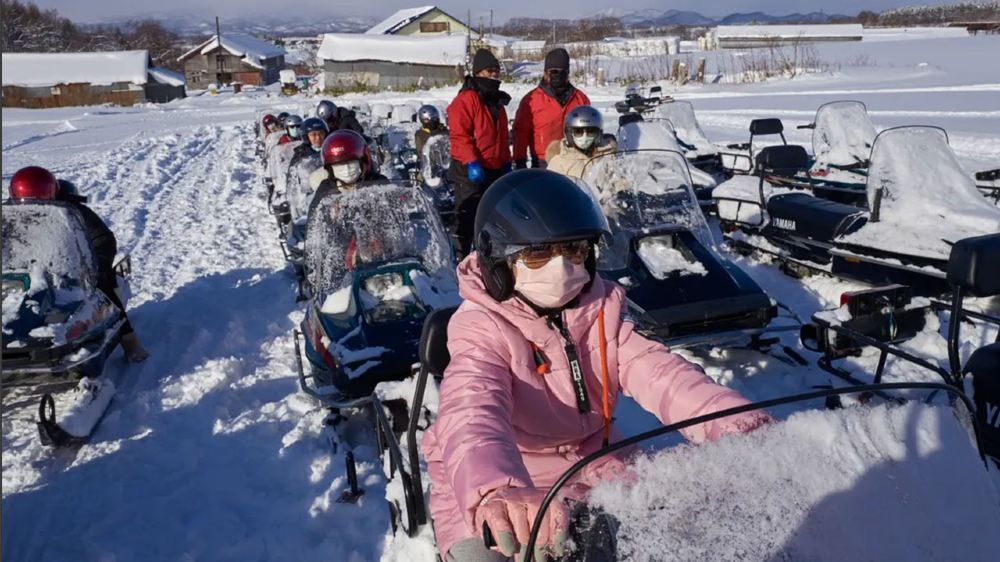 ▲ 洞爷湖展望台, 登临打卡观景点,俯瞰日本北端不冻湖的奇迹——到了冬季依旧荡漾的湛蓝湖面,如巨幅琉璃镶嵌在群山间,还可以体验刺激的雪地摩托。