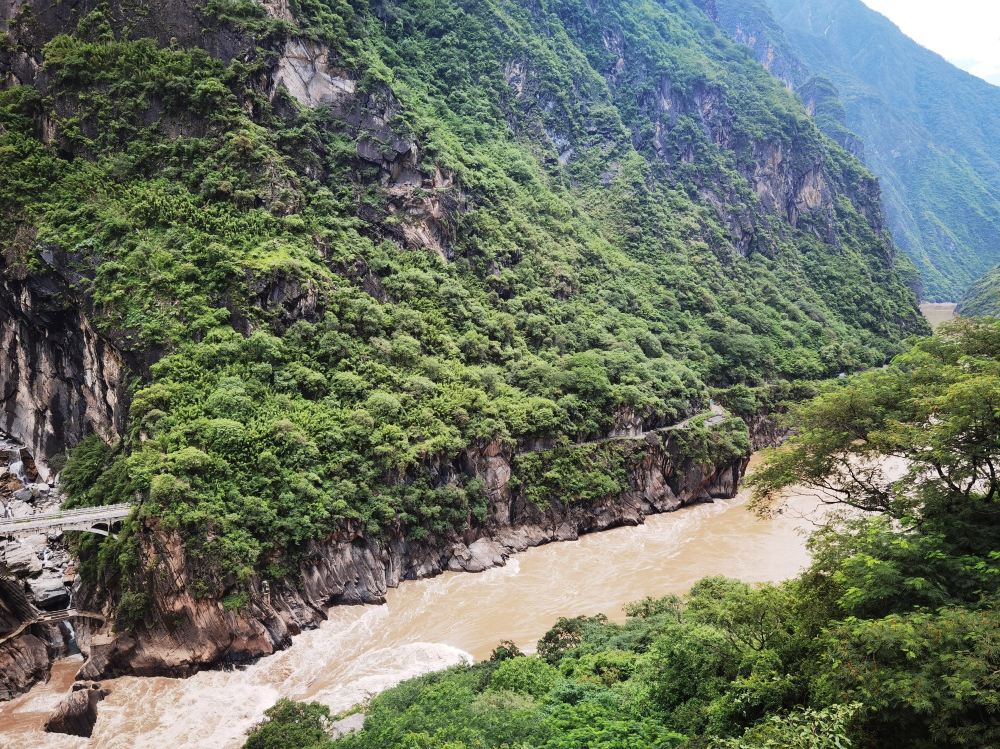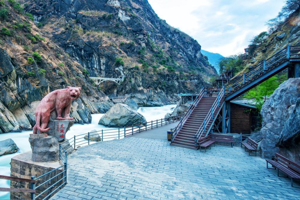 从丽江出发的虎跳峡一日徒步路线【峡谷上游风景*为优美,其中包括充满挑战但又令人欣喜的“28个弯道”,这里可以欣赏到徒步旅行中*具标志性的全景。 下到河边,近距离观赏传说中的虎跳石。】