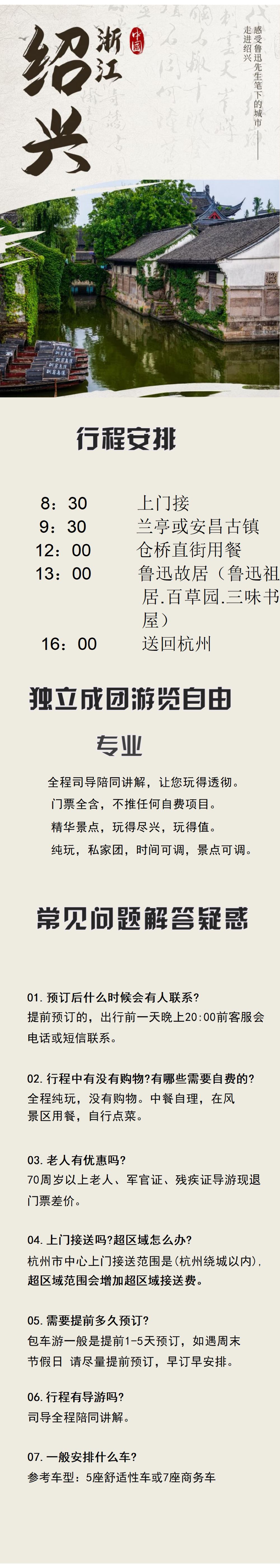 安昌古镇或者兰亭+鲁迅祖居+百草园+三味书屋一日活动【行程中接驳车辆为全系品牌车型,独立成团,司导全程陪同讲解,贴心服务】