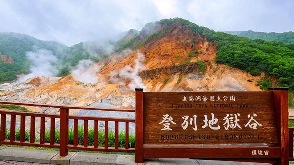 ▲ 登别地狱谷 是位日本北海道登别市的一个火山口遗迹,邻近洞爷湖,大约在一万年前形成,有直径大约 450 米 的地方依然在喷白烟,而且寸草不生,又有强烈硫磺味,登别地狱谷因其就像在地狱之中,故此得 名。(冬季正常出发)