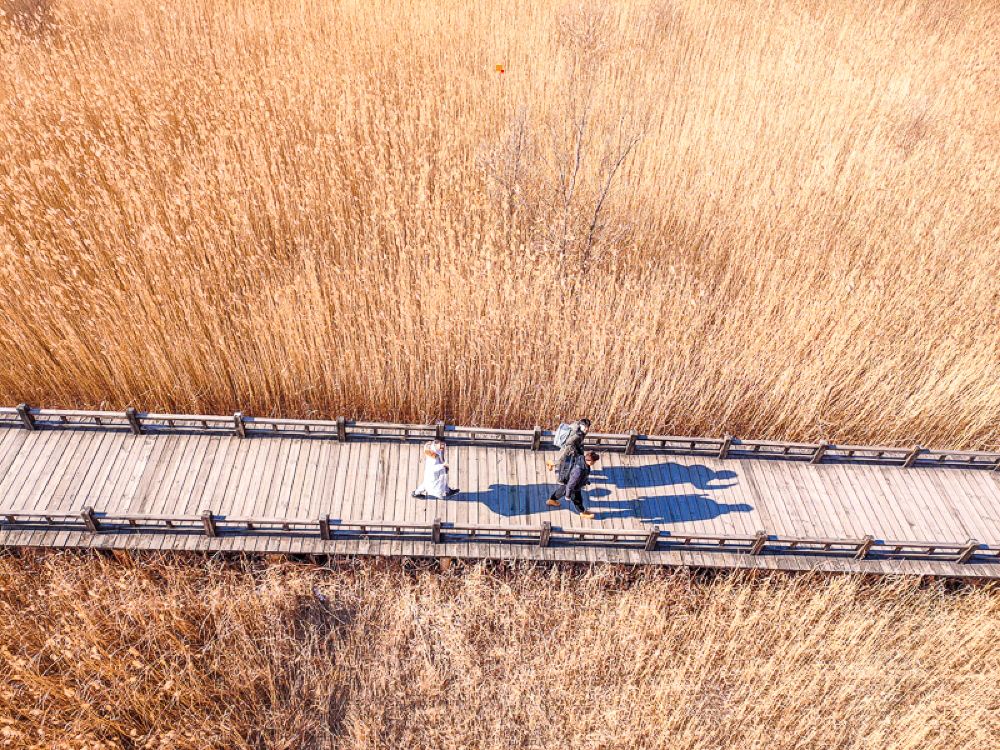 - 14:00|抵达野鸭湖湿地公园后,自由活动。徒步环湖全程约6公里,不紧不慢时间正好;有湖中木栈道,穿梭在大片的芦苇荡中央;也有林荫小路,随时休憩;景区内有望湖楼,可以俯瞰湖景、芦苇荡及远处的康西草原。