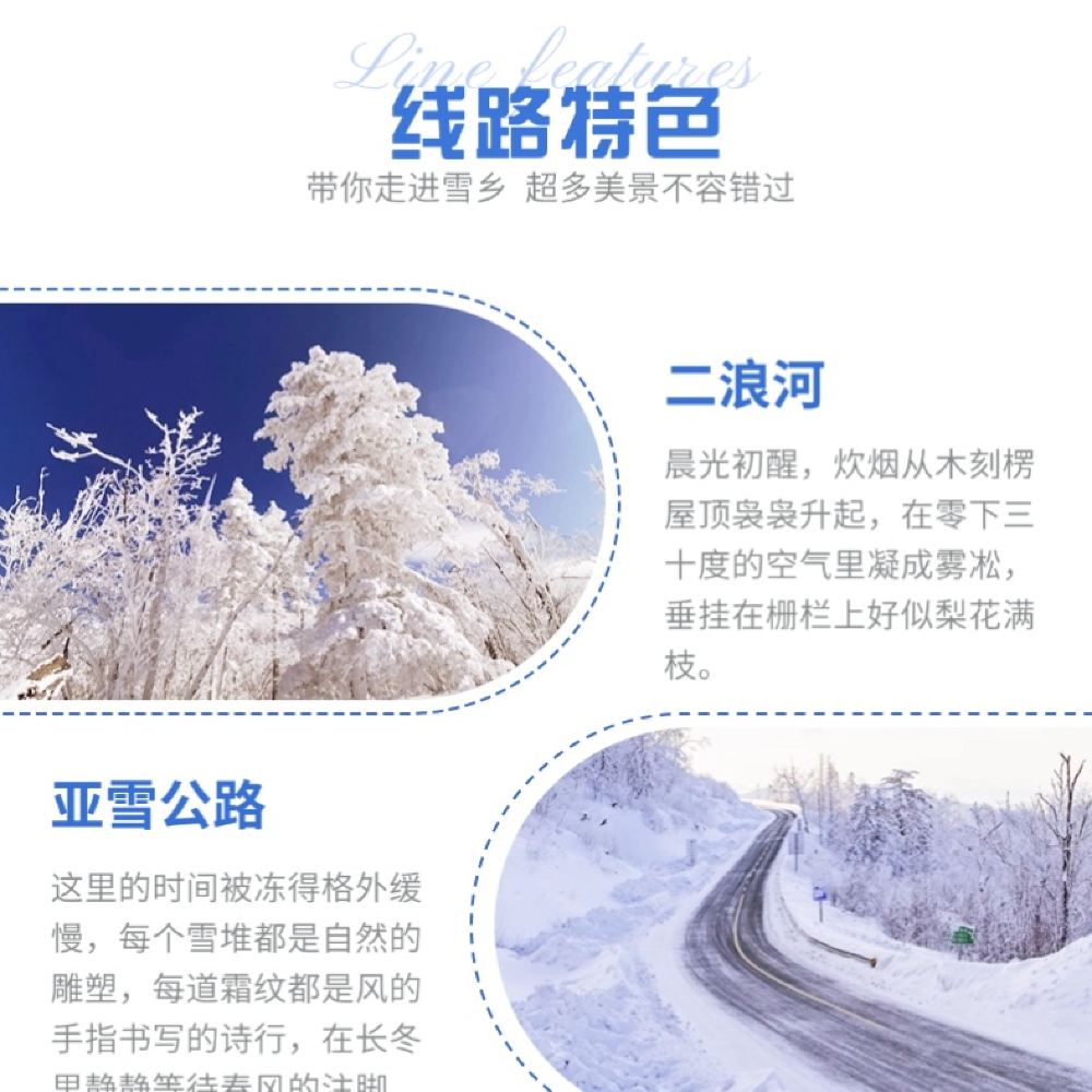 【温馨提示】由于雪乡温度低,请宝子们出行前注意保暖,以防感冒哦,因本次时间紧,任务急,全程不含餐,请您适当准备一些方便食品以备不时之需哦