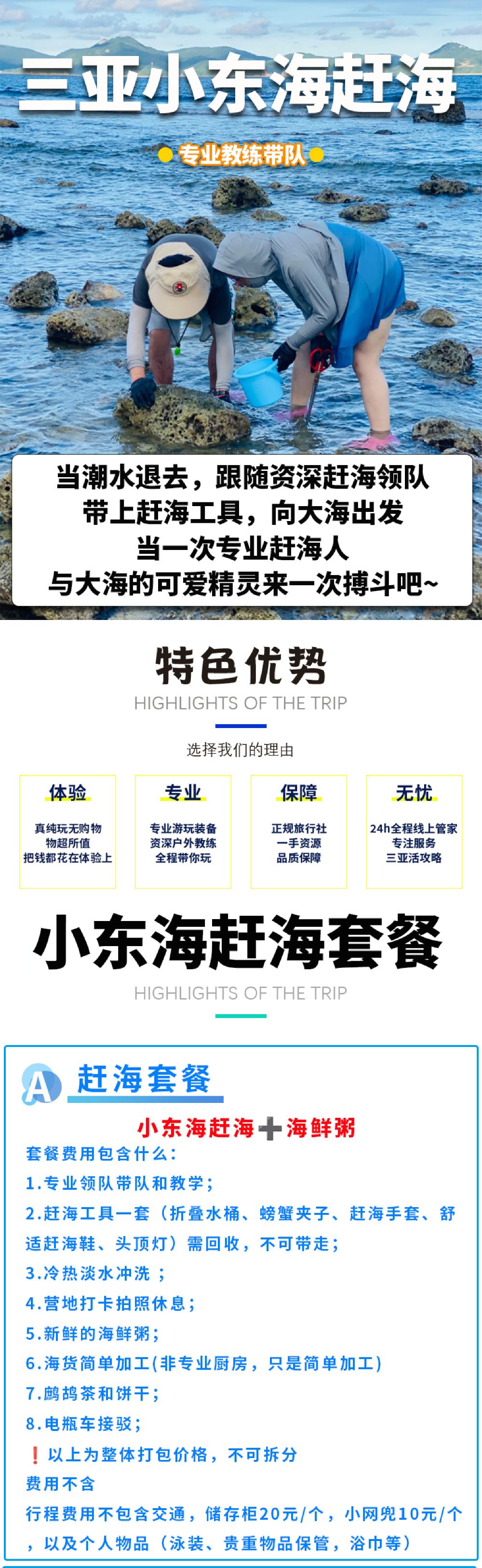 1.到三亚小东海营地集合,更衣换鞋准备赶海;