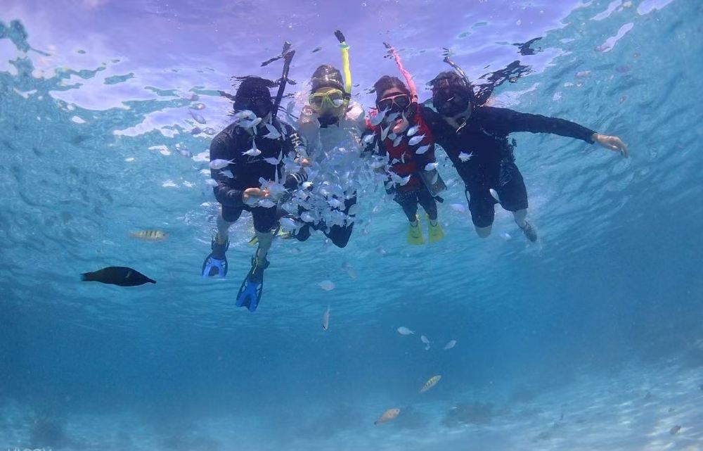 【共享游艇/帆船游玩+专业领队带领+玻璃海不限时浮潜+休闲海钓+极速摩托艇体验/极速香蕉船体验+网红玻璃船(航拍)+浮潜水下拍摄+浮潜面镜,咬嘴+网红泳池滑梯+网红魔毯】
