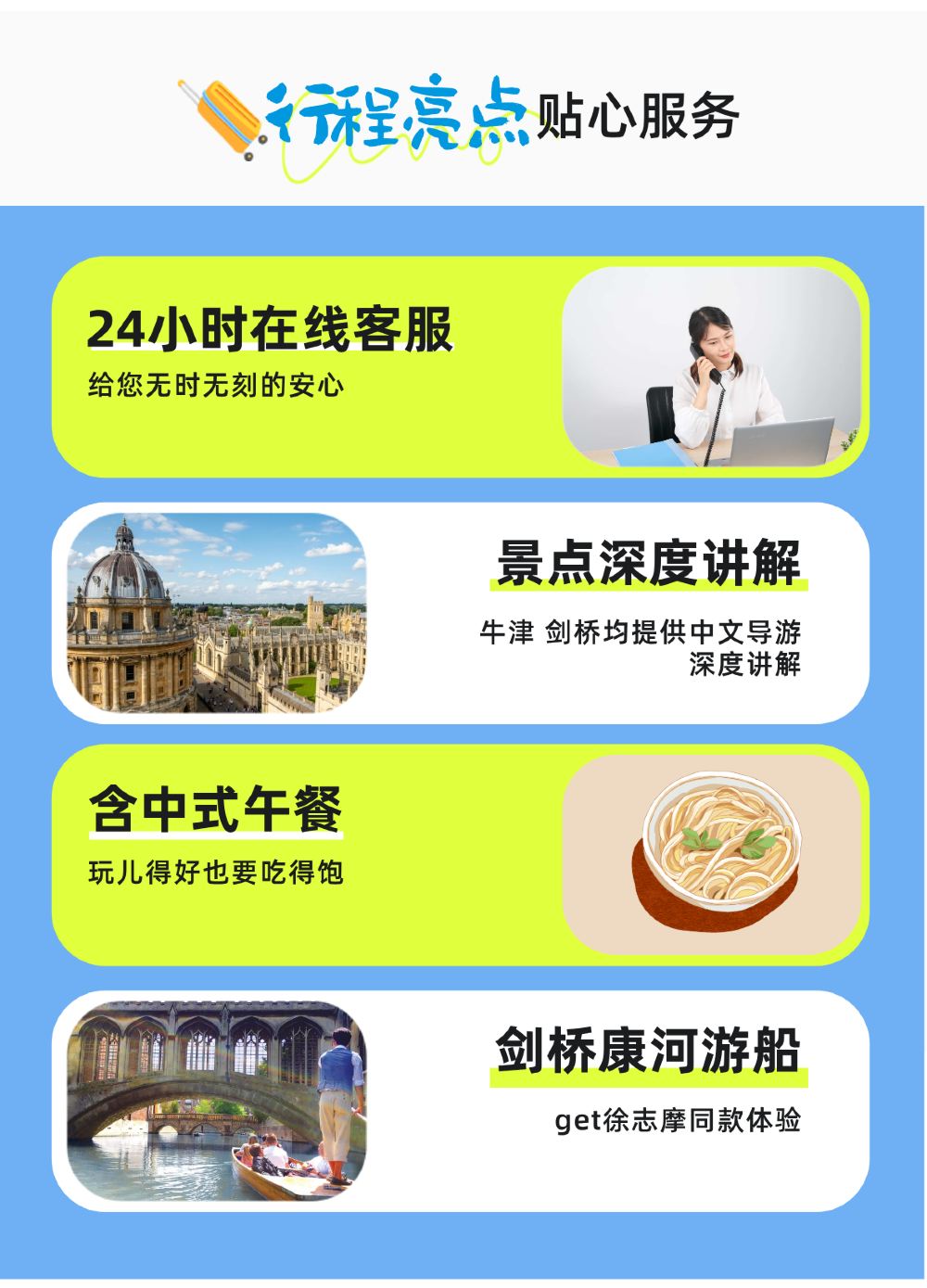 专业服务: 24h在线中文客服随时为您服务,提前一天拉集合群,纯中文导游陪同服务,双名校精讲