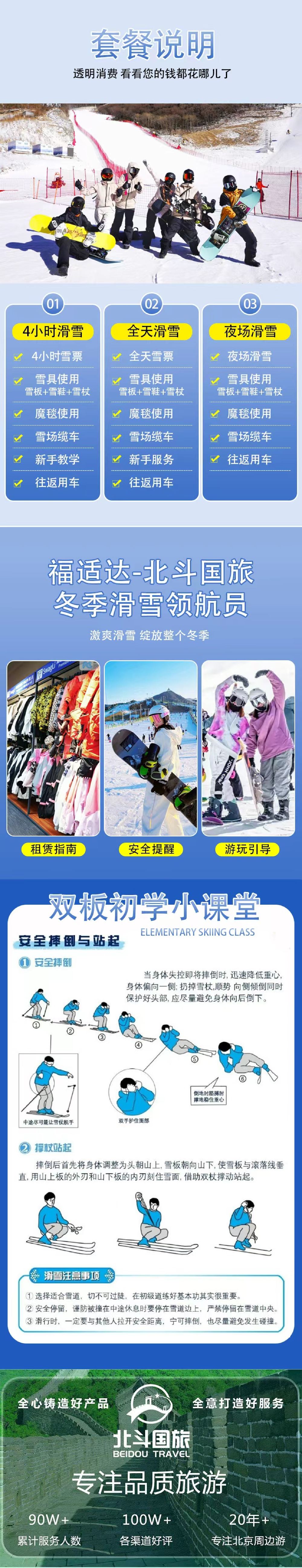 2.【4小时滑雪】套餐游客退雪卡后可在雪场吃饭,休息,自由活动,等待一起返程。