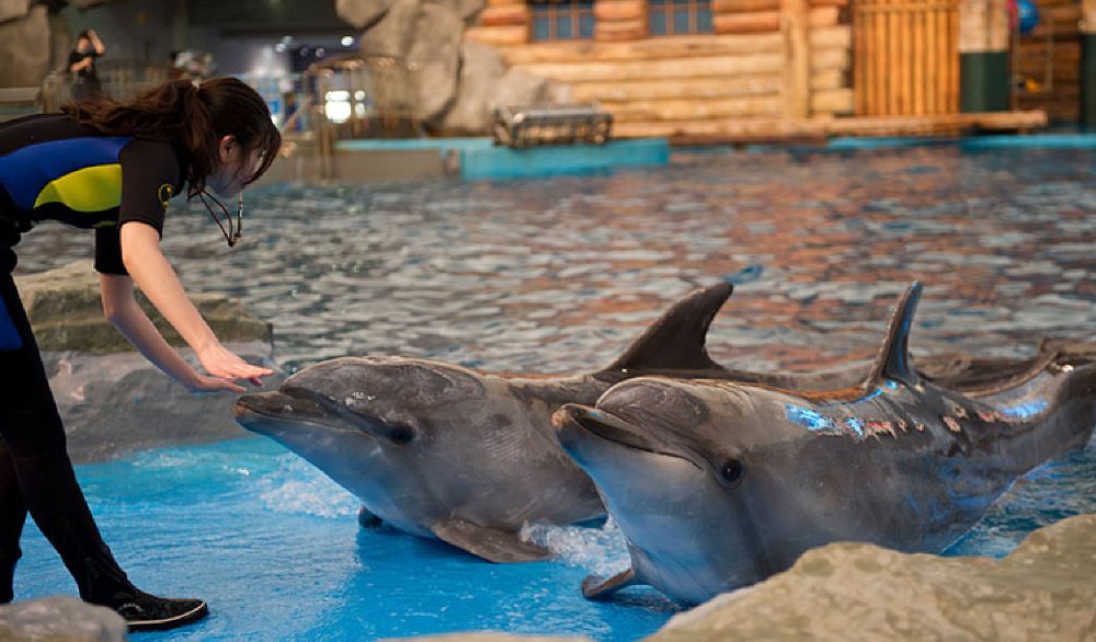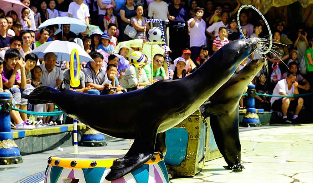 ▲ 极地馆的白鲸和海豚表演十分精彩。演出有《梦幻塔希提》《鲸豚之恋》等剧目,白鲸与海豚会和来自世界各地的演员一起,带来“浪漫骑士”“飞旋跳跃”等表演,还有空中跳跃、环池拍浪、人豚共舞等环节,灵动的身姿和默契的配合令人赞叹 。