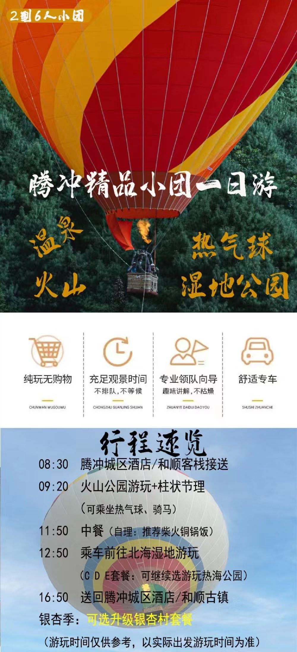腾冲火山地热国家地质公园+北海湿地+柱状节理景区一日游【多套餐,路线可选,腾冲精品纯玩小团2~6人,优选精华景点】