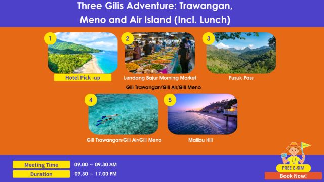 ▲ 探索吉利特拉旺安岛、美诺岛和艾尔岛的美丽,清澈的海水、白色的沙滩和充满活力的珊瑚礁使这些岛屿成为真正的热带天堂。