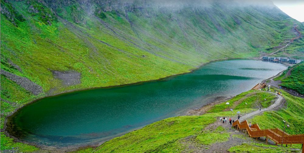 ▲ 景区景色层次元素丰富,有如邓生沟里的溪流,也有如九顶山上的草甸和花海,还有如阿勒泰的群山深浅颜色错综森林,核心的还是顶上的那片在阳光下翻着翠绿的海子。