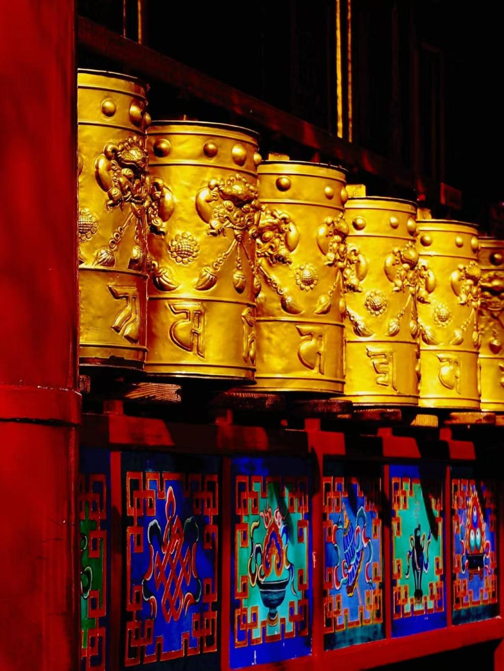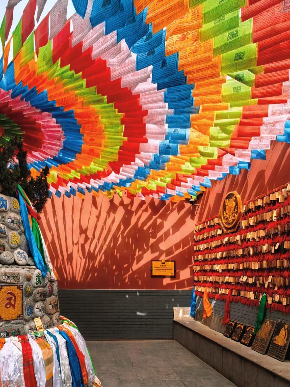 ▲ 每一片经幡上都印满了经文,据说风吹动经幡一次,就相当于诵读了一遍经文