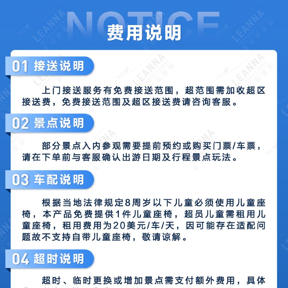 *如需增加游览时长/景点数量,或接送超区、需额外补费哦~