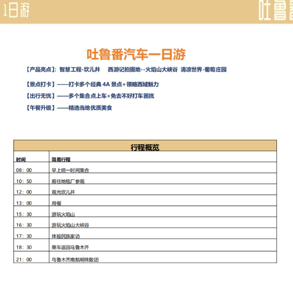 吐鲁番汽车一日游【智慧工程-坎儿井 西游记拍摄地--火焰山大峡谷 清凉世界-葡萄庄】