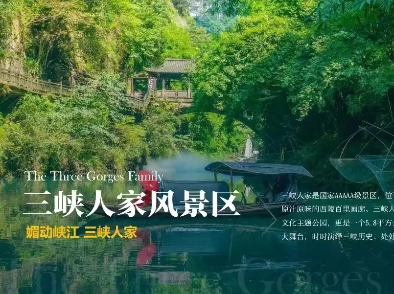 【1】酒店自行用餐后,于08:30均瑶,09:00游客中心,09:30宜昌东站指定地点集合后乘大巴车前往【三峡人家景区】