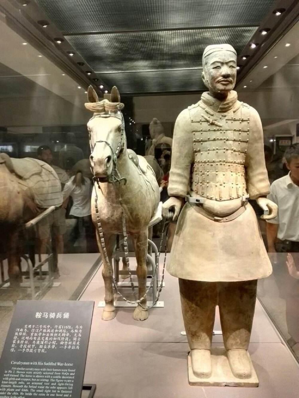 ▲ 二号坑和三号坑分别在一号坑的两旁。和一号坑一样有真人、真马大小相似的陶俑、陶马近二千件。有车兵、骑兵和步兵等不同的兵种,排列整齐有序。震撼虽然不如一号坑,但是因为每个俑坑的队伍、作用都不同,所以同样值得一看。 兵马俑的塑造,是以现实生活为基础而创作,艺术手法细腻,陶俑装束、神态各异,具有鲜明的个性和强烈的时代特征。俑坑内出土的青铜兵器有剑、铍、矛、戈、戟、殳、弩机以及大量的箭镞等,大部分兵器历经两千多年依然锋刃锐利,表明当时已经有了很高的冶金技术。