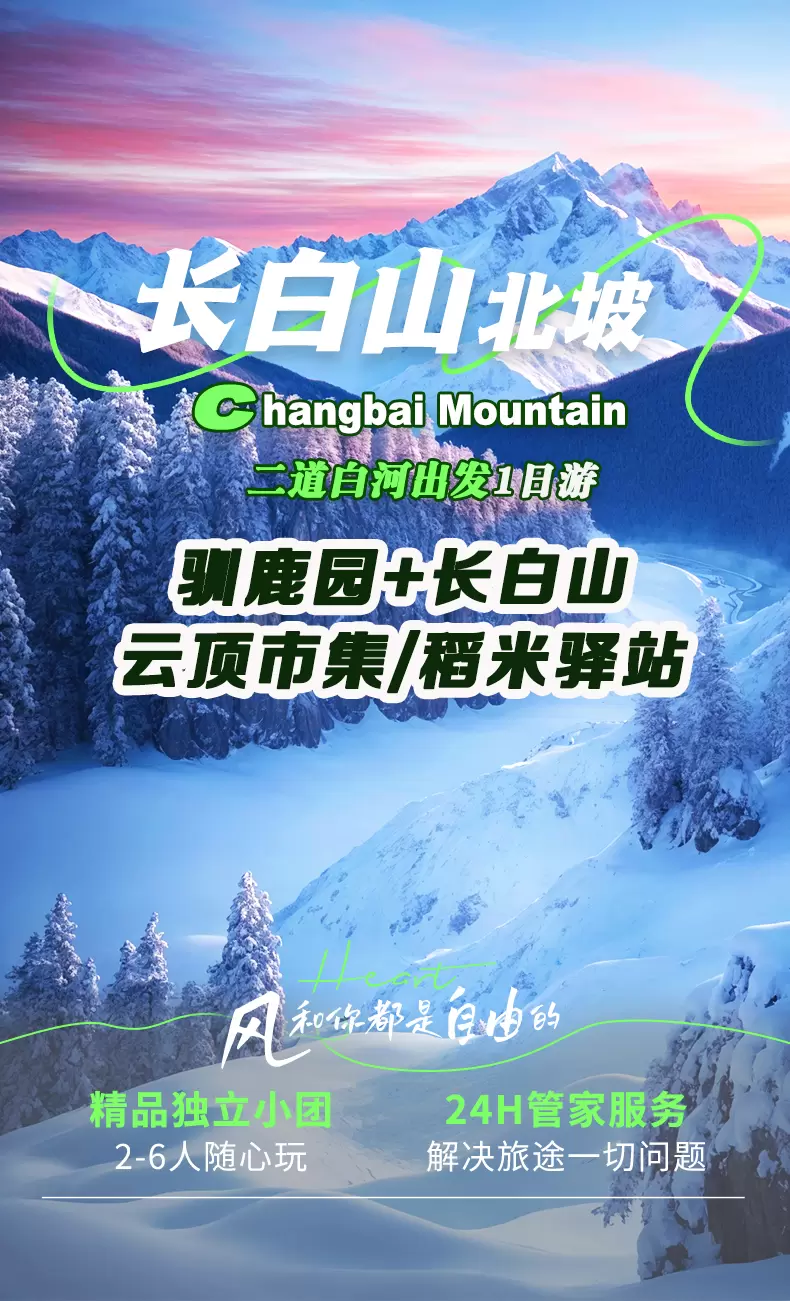 长白山北坡景区+长白山天池一日游【漂流/云顶市集/稻米驿站/雪人军团/冰封玫瑰/驯鹿/云顶天宫 多套餐可选】