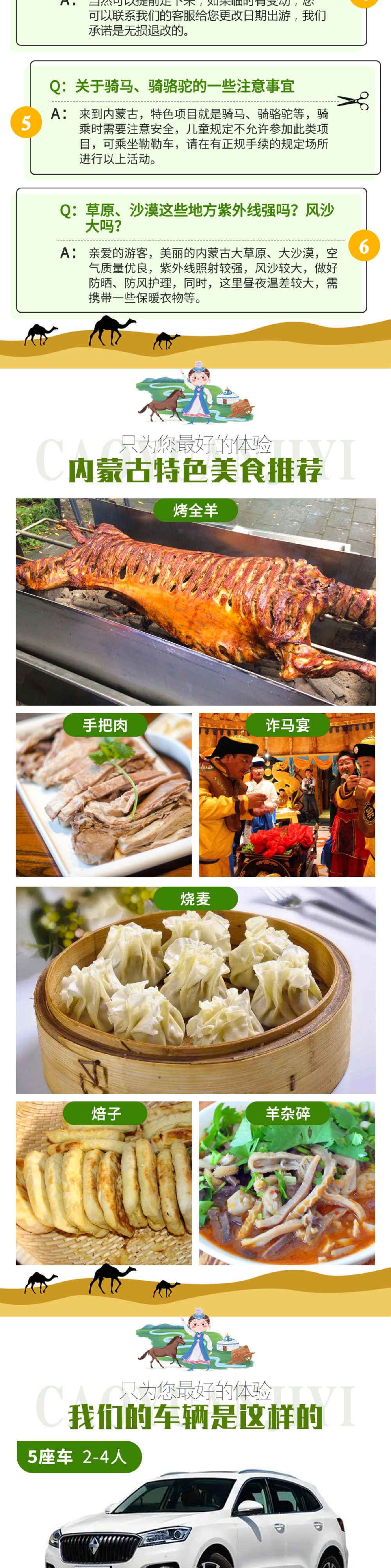 2:中童1.1-1.4米到景区后(套餐A和套餐B需要补交单岛套票100元,不含骆驼,双岛180元,不含骆驼,如骑骆驼在此基础上补交60元,费用交予导代交景区)