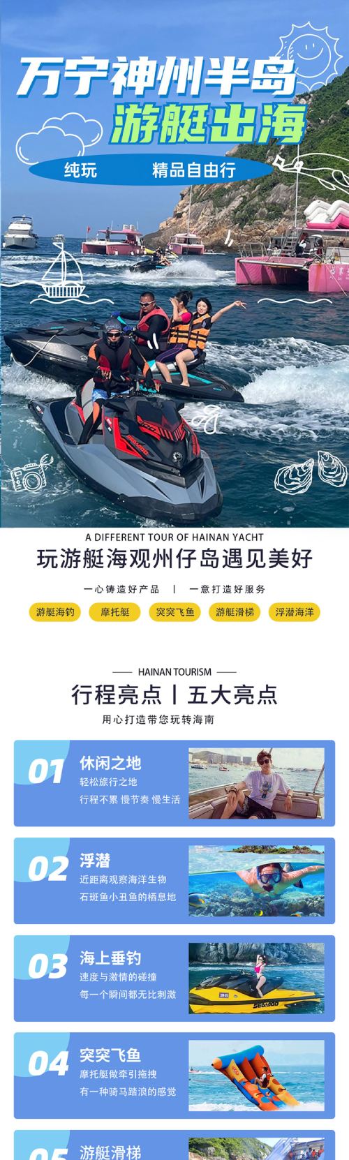 万宁神州半岛洲仔岛游艇出海浮潜一日游【[多种船型]欧洲进口品牌单体/双体帆船、进口豪华游艇,摩托艇】