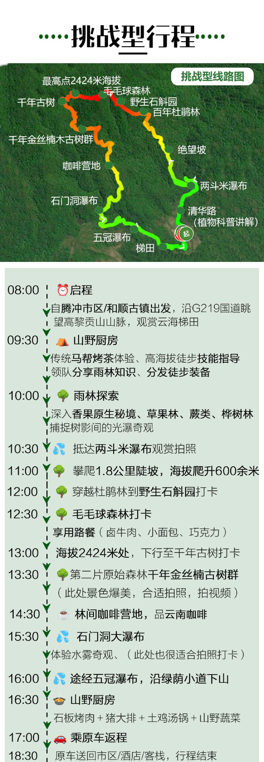 高黎贡山【曲石高原徒步8-10KM+专业向导+毛毛球古树群】【[专业+安全]双认证专业领队携专业徒步装备+医疗包+补给路餐带您沉浸穿越原始森林,全程讲解科普】