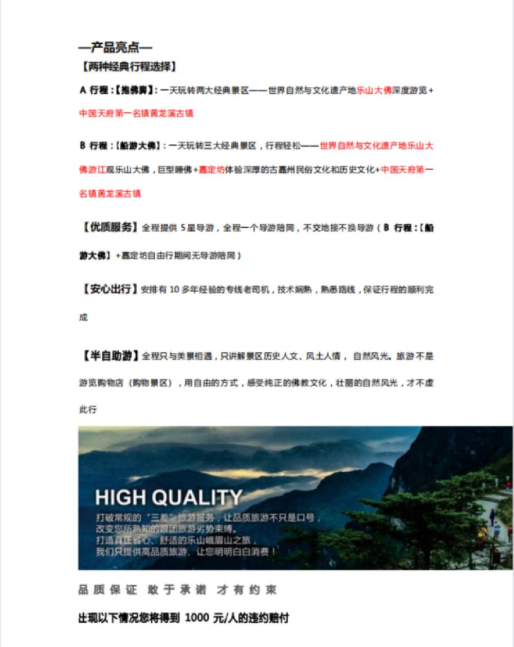 自费项目:乐山观光车20/人(单程),往返30/人;无线耳麦讲解器(乐山抱佛足行程):20/人;