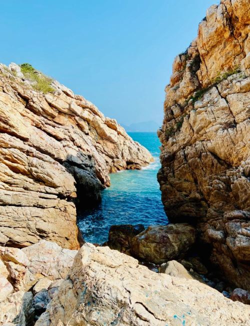 ▲ 一半山路一半海岸线,有礁石阵、海蚀洞、沙滩和悬崖,海水清澈如“果冻”。