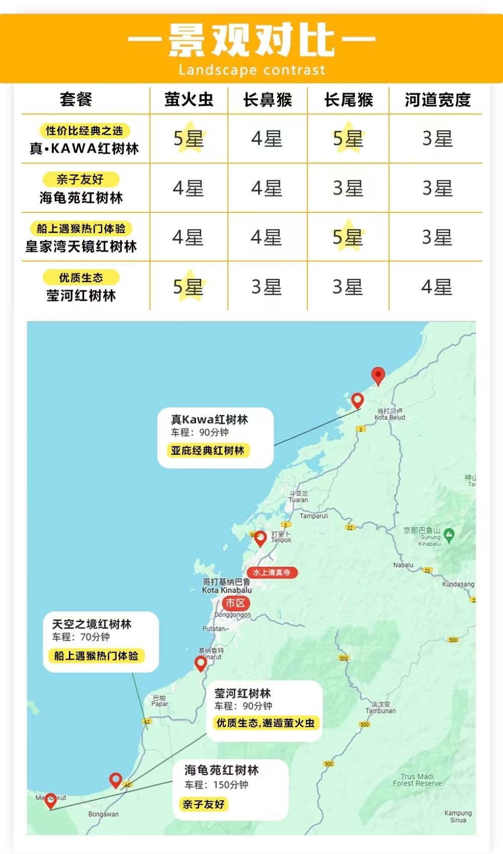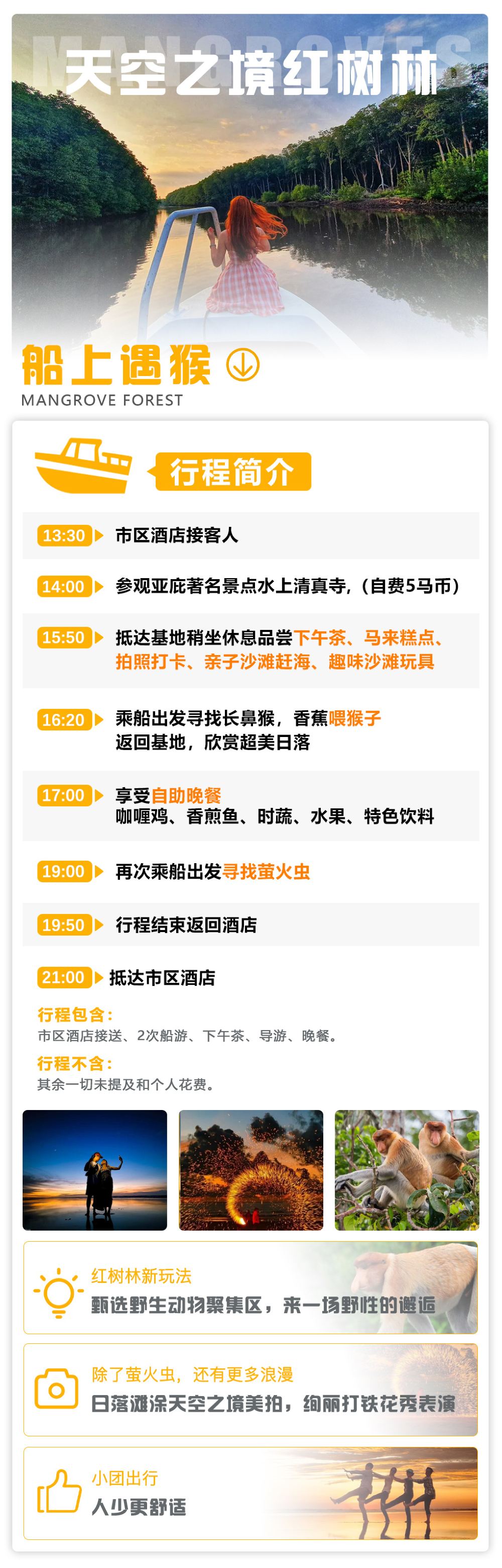 马来沙巴Kawa红树林亚庇一日游【卡瓦/海龟苑/天境/莹河】【寻找野生长鼻猴,夜晚探险童年萤火虫】