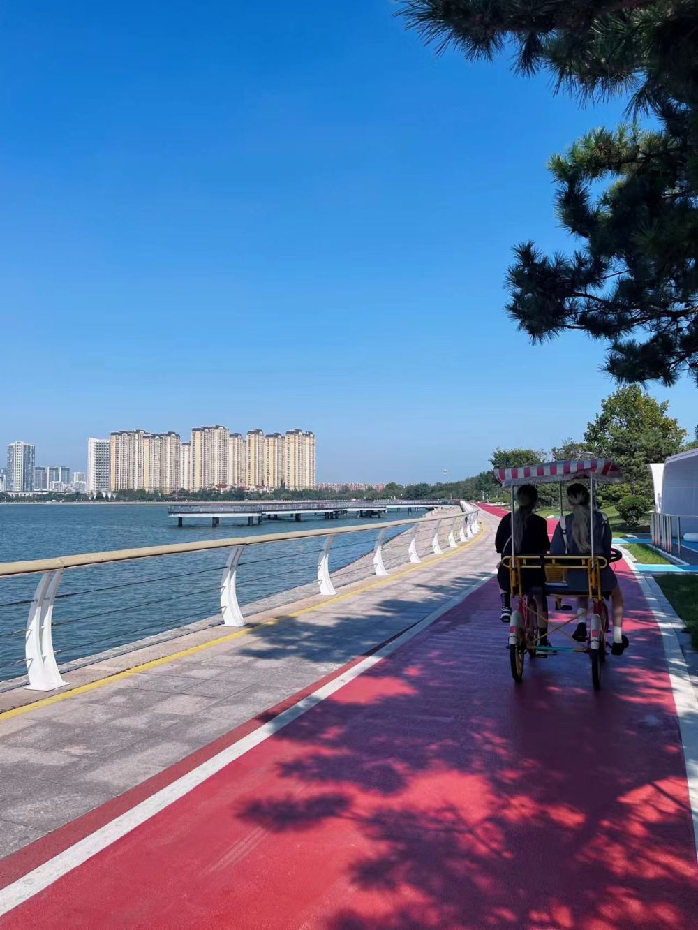 在这里,可以选择环海骑行,有双人和四人自行车,可以带着家人或者朋友一起,在这样的环境当中,从波光粼粼到落日斜照都嫌时间过得太快