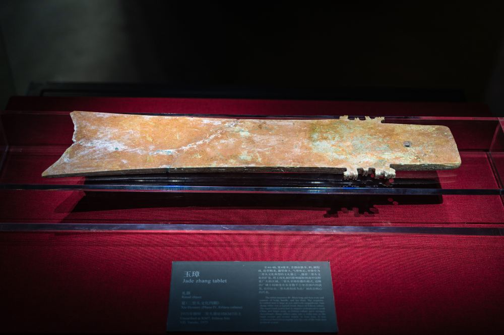 ▲ 玉璋,色泽温润,纹饰简约大气,是二里头遗址出土的典型玉礼器。它或为玉璋类器物,在夏代是沟通天地、彰显等级的重器,其规整的形制与精湛的打磨工艺,尽显夏代玉器制作的高超水准,是夏代礼制文明的实物密码。
