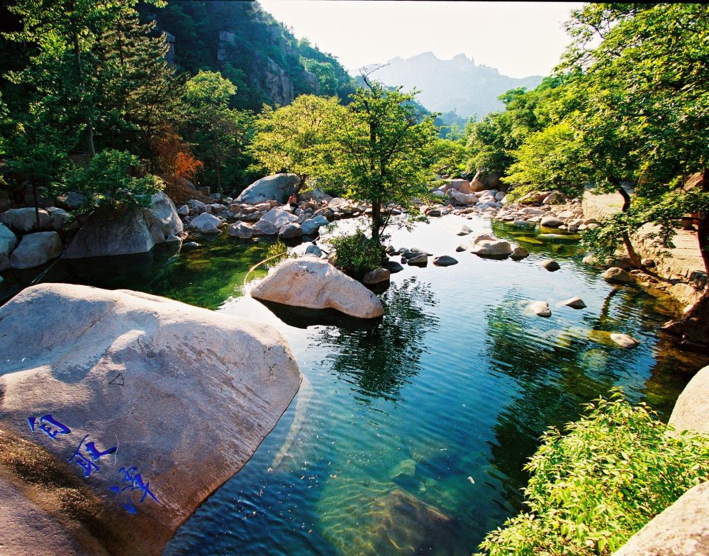 ▲ 【八水河】是由8条涧流汇集而成的一条河流。这条河是崂山的一条主要河流,长约8公里,从这里进入海口。这条河流虽然不长,但景色很优美,无论是从这里逆水而上,还是从龙潭瀑顺流而下,都会看到湍急的河水奔腾而下,因受到河床里无数大小不等的岩石阻挡,生成许多妙趣横生的水景,流水时而穿石,时而迂回,时而旋转,引人入胜。水流大的时候,如同千军万马,咆哮如雷,响彻整个山谷,十分壮观。