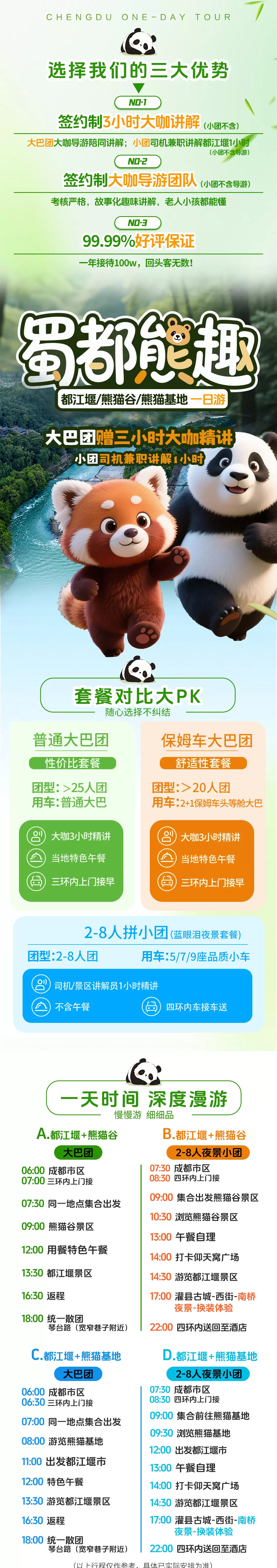 成都熊猫谷+都江堰景区一日游【<可选熊猫基地>0距离接触小熊猫+错峰少排队+三环内接早+特色熊猫午餐】