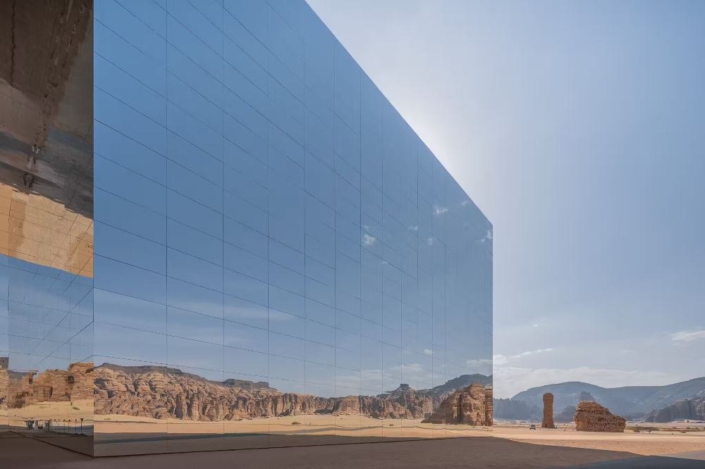 ▲ 这是一个大型的镜面建筑,是一个包含商业活动、会议、展览等活动的多功能场所。马拉亚音乐厅外部墙体全部由镜面材质打造而成,白天,镜面映照出山恋沙漠的景致,让整个音乐厅的视角效果与自然融成一体。
