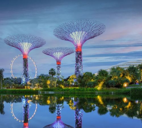 ▲ 滨海湾花园,超级树X云雾森林X花穹=新加坡“花园城市”的国家愿景。花园内的温室收藏了来自全球五大洲的珍稀植物,气候模拟技术令人惊艳。夜幕降临,超级树灯光秀将准时上演