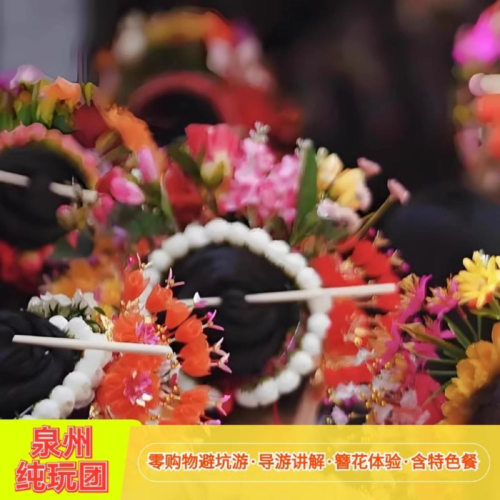 ▲ 蟳埔村坐落于海上丝绸之路起点泉州港北岸,曾是远洋商船的出发地,蟳埔女以头戴鲜花做的“簪花围”而著称,以“簪花围”为代表的蟳埔女习俗,已被列入第二批国家级非物质文化遗产名录。蟳埔女服饰特点是是“民主头,封建肚”。2005年“蟳埔女服饰”成功申报首批省重点非遗保护项目。 [9]2008年6月7日,蟳埔女习俗经中国国务院批准列入第二批国家级非物质文化遗产名录。