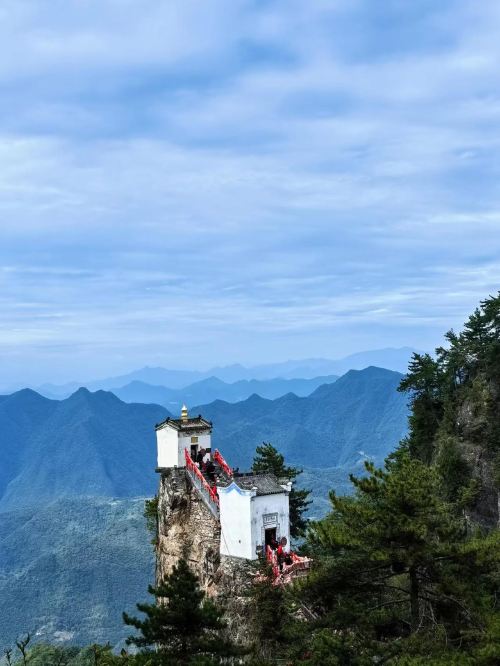 ▲ 4. 观云台赏景:登上观云台,俯瞰群山,视野开阔,塔云山的壮美景色尽收眼底。 5. 探秘金顶观音殿:作为塔云山的重头戏,一定要登上金金顶观音殿建于万仞绝顶之上,面积不平方米,三面悬于万万丈深渊,仅靠四根石柱插入岩缝,再以石条铺垫立基砌墙建庙,庙顶以黄铜铸尖,铁瓦覆盖,工艺精湛,被称为“秦楚一柱,绝顶道观”。这座建于明万历年间的古建筑,承载着深厚的道教文化内涵,至今已有500多年历史,清乾隆以来曾五次修葺,是省级二级文物保护单位,近距离感受它的震撼,仿佛穿越时空。