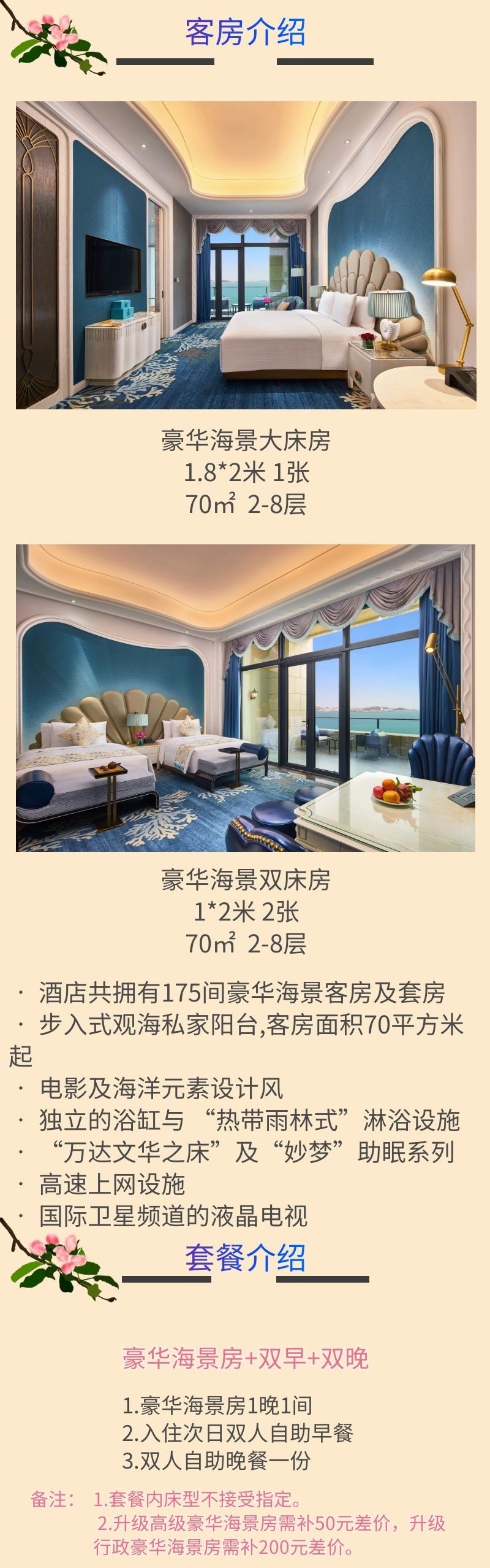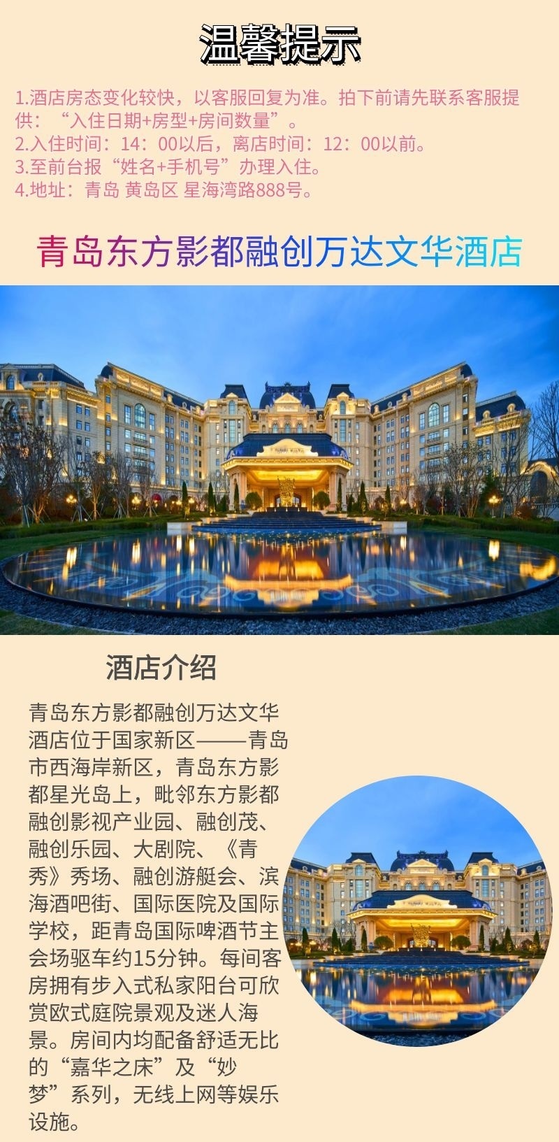 【酒店套餐】青岛东方影都富都万达文华酒店豪华海景房+双早+双人乐园/小珠山动物园/自助晚餐/套餐 任选