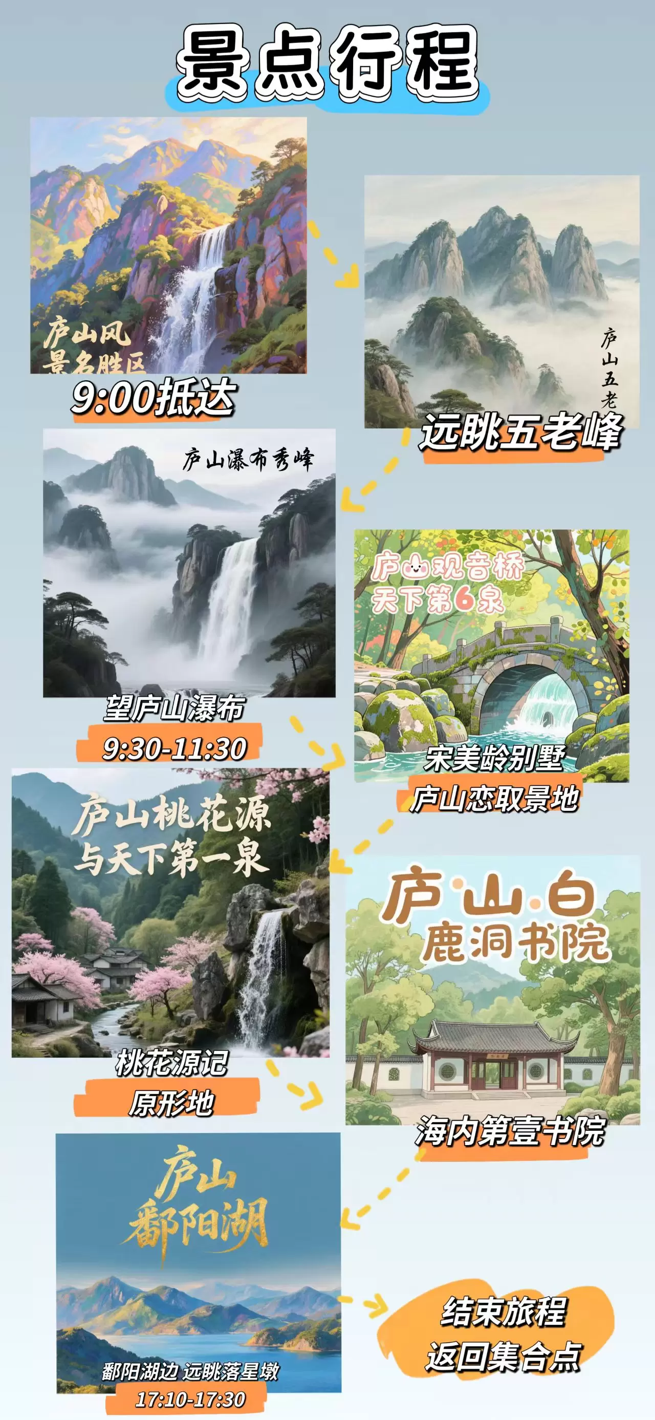 庐山风景名胜区一日游【上门接送一日游,9人小团,不爬山含索道,含门票庐山瀑布,桃花源记】