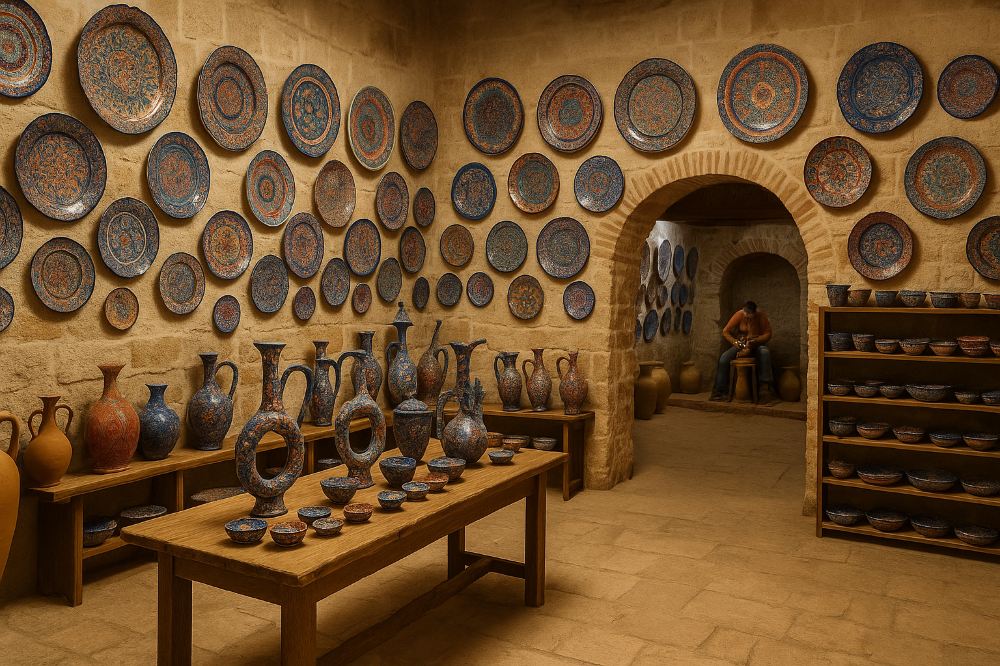 ▲ 工坊内展示传统陶艺制作流程,包括拉坯、修坯与绘图等步骤。游客可观看师傅制作,也能看到成品的纹样与造型。部分工坊提供简单体验,可以亲手尝试塑形。商品种类多样,适合选购轻便纪念品。