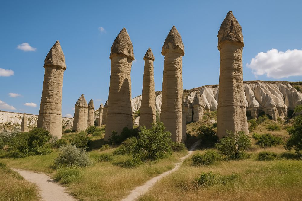 ▲ 精灵烟囱以多层岩柱形态闻名,岩石顶部呈蘑菇状结构,纹理明显。步道平坦,可近距离观察地貌,将自然风化的结构特征展现得更清楚。适合散步、拍照和短暂停留。