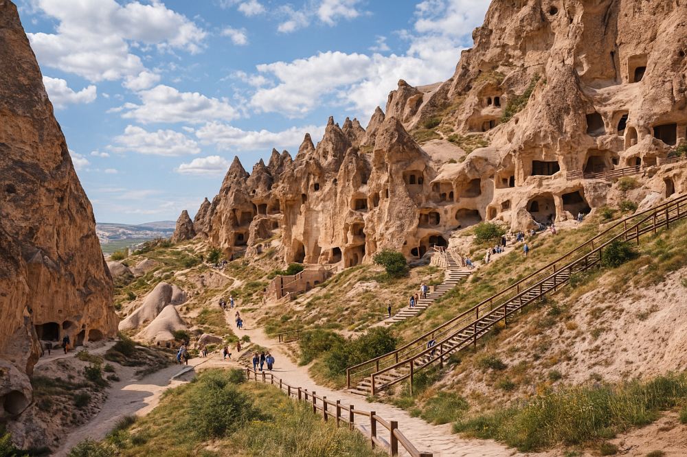 ▲ 格雷梅全景点位于高处,可看到多个方向的峡谷与岩柱群,景观层次丰富。视野开阔,能观察到卡帕多奇亚典型的岩壁颜色变化与地貌结构,是了解区域整体环境的起点。现场停留节奏轻松,适合拍照与短暂步行。