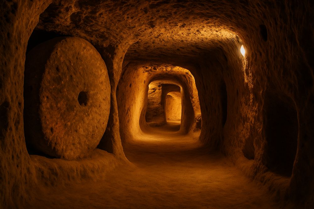 ▲ 地下城由多层岩洞组成,包括储藏区、厨房、通风井与通道等结构,展示早期居民的地下生活方式。路线标示清晰,参观以宽阔通道为主,能够看到石门、房间布局和整体地下结构,对理解当地历史文化非常有帮助。
