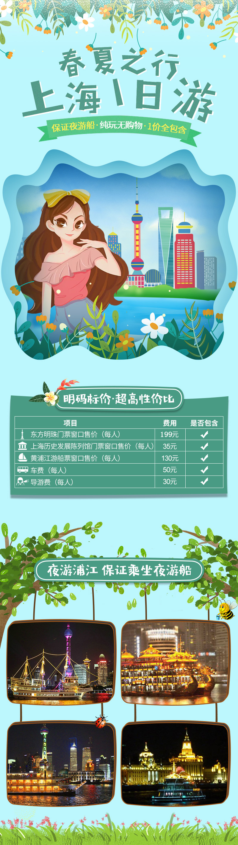东方明珠+浦江游船+外滩纯玩一日游 夜游上海多套餐可选